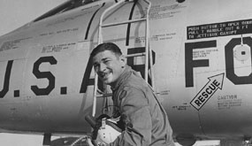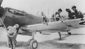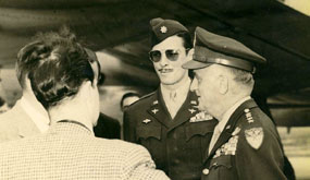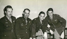 Members of the former Eagle Squadrons, now members of the U.S. Army Air Force: Major Carrol McColpin, credited with downing eight enemy planes; Capt Sam Mauriello, who destroyed three enemy planes and damaged two others, Major William Dailey, Jr., who destroyed six enemy planes, and Capt Reade tilley, who destroyed seven enemy planes, damaged five, and probalby destroyed three more.