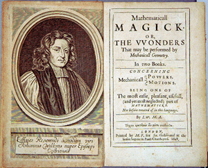 Throughout his life Wilkins puzzled over ways in which manned flight might be achieved. Reconsidering, in this new book, the ideas that he had set out at the end of the revised edition of The Discovery of a World in the Moone, he arranged possibilities into categories, deciding that there were "four severall ways whereby this flying in the air, hath beene or may be attempted. Two of them by the strength of other things, and  two of them by our owne strength." These he lists as "By spirits or Angels. . . By the help of fowls . . . By wings fastned immediately to the body. . . By a flying chariot"  (Mathematicall Magick, pp. 199-200).  He considers each of these in turn.  The first is of no help to those who wish to achieve things by rational means; the second he thinks not impossible, given sufficient skill in training birds; the third he believes to have been tried already with some success by several men; though difficult, the fourth seems to him to be the most likely to succeed and also potentially the most useful. He then proceeds to devote a chapter to a discussion of the difficulties. Like many others in his day, Wilkins believed that gravity fades away a few miles above the earth's surface and that the flier would need to expend only enough energy to reach that height. Equally interested in the matter, the secretary of the Royal Society, Robert Hooke, consulted him on a number of occasions with designs for a primitive helicopter and techniques for attaching wings to the body.