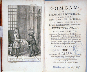 Gomgam, ou l'homme prodigieux, transporté dans l'air, sur la terre, et sous les eaux.  Livre veritablement nouveau.  Titetutefnosy.  Seconde édition.  A Paris, Chez Pierre Prault, 1712.