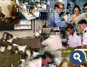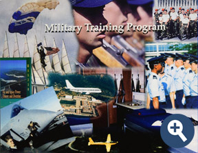 The exhibit chronicles benchmarks in the Academy’s history and depicts the administration of the Academy’s multifaceted program of instruction. It is focused on the evolution of the process by which the Academy trains and educates militaryprofessionals–officers who are disposed to a career of service to the United States in the Air Force.